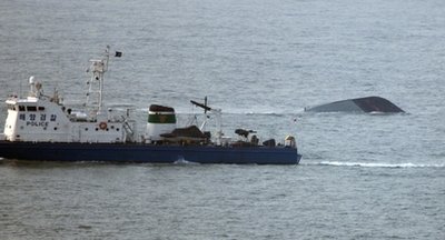 有韓國媒體指出,據(jù)事發(fā)當?shù)鼐用裢嘎,聽說船上部分乘員喪命。海軍當局有關(guān)人士也表示,部份死者遺體正送往附近醫(yī)院。
