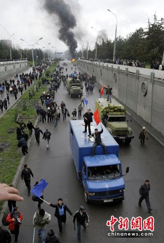 中新網(wǎng)4月8日電 當?shù)貢r間4月6日開始,數(shù)千名吉爾吉斯斯坦反對派示威者在首都比什凱克市中心集會游行,并與防暴警察發(fā)生沖突,逐漸演變成騷亂,造成數(shù)百人傷亡。反對派扣押政府高官,占領(lǐng)部分政府機構(gòu)以及國家電視臺,并稱最終目的是要總統(tǒng)下臺,奪取國家政權(quán)。吉總統(tǒng)巴基耶夫下令全國進入緊急狀態(tài),并宣布實行宵禁。