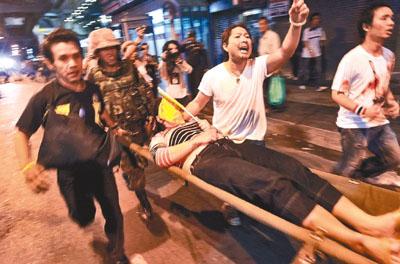 雖然軍方警告將會武力鎮(zhèn)壓示威者,許多外國旅客卻無所懼。32歲的美國游客霍爾德里奇23日到紅衫軍的示威場地拍照,認為女友擔心會發(fā)生暴力沖突是杞人憂天。他說:“我不覺得有任何威脅,人人都很友善,四周都有免費食物!逼溟g兩名背包客在不遠處,與紅衫軍一同拍照留念。