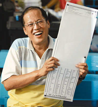 中新網(wǎng)5月11日電 據(jù)香港《文匯報(bào)》報(bào)道,菲律賓10日大選,選舉委員會表示,在已點(diǎn)算的57%選票中,已故前總統(tǒng)阿基諾夫人的兒子阿基諾三世取得40.58%選票,其勁敵73歲前總統(tǒng)埃斯特拉達(dá)只得25.72%。阿基諾三世有望繼亡母后,成為家族中第2名總統(tǒng),他承諾當(dāng)選后致力打擊腐敗和消除貧困。