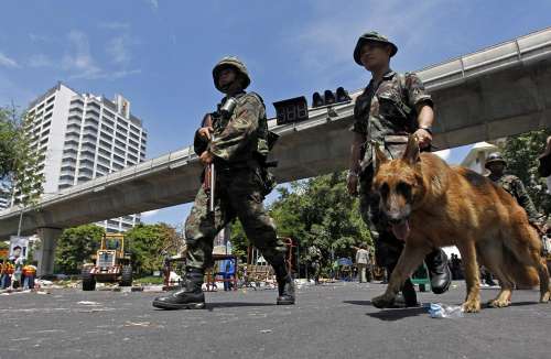由于軍方早前在四季酒店內(nèi)曾經(jīng)發(fā)現(xiàn)爆炸品,軍隊(duì)帶同犬只搜索紅衫軍有沒有留下危險(xiǎn)物品。泰國軍方表示,恢復(fù)曼谷市面秩序的行動(dòng)于下午4時(shí)結(jié)束,之后清掃街道等工作將移交給曼谷市當(dāng)局。此外,軍隊(duì)和民眾21日早上開始對(duì)除拉差巴頌地區(qū)以外的紅衫軍集會(huì)地區(qū)的街道進(jìn)行清掃,拆除路障。