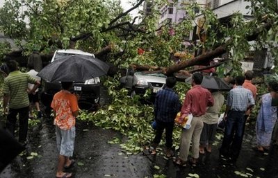 熱帶風(fēng)暴襲擊了孟加拉邦人口密集的首府加爾各答,造成樹木折斷、斷電,許多車輛被毀。