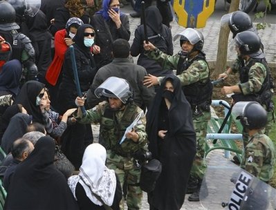 反對派領(lǐng)導(dǎo)人穆薩維與卡魯比敦促支持者們走上街頭,抗議總統(tǒng)艾哈邁迪內(nèi)賈德的政府。目擊者稱:“警方與幾百名示威人群發(fā)生沖突。示威者高喊‘打倒獨裁者!’。警方用警棍驅(qū)散示威人群!绷硪幻繐粽叻Q,警方向人群發(fā)射了催淚彈。