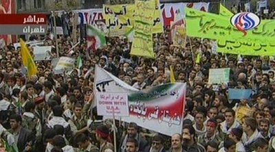 示威人群包圍了原美國大使館舊址,高呼“打倒美國!”、“以色列去死!”等口號。示威人群還把寫著“山姆大叔”標(biāo)志的海報撕毀,并高喊“我們血管中流淌的鮮血,是我們奉獻給偉大領(lǐng)袖的禮物!