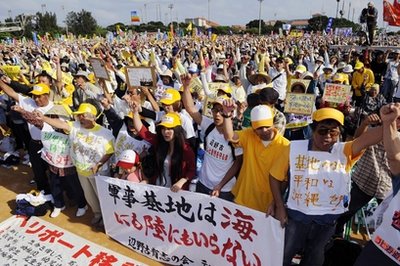 據(jù)報道,將機場遷至鹿兒島縣德之島的方案遭到了當?shù)氐膹娏揖芙^。日本首相鳩山由紀夫能否按照承諾在5月底前解決搬遷問題令人擔憂。政府內(nèi)部有人主張回歸遷往名護市施瓦布軍營沿岸地區(qū)這一現(xiàn)行方案。集會顯示了沖繩拒絕縣內(nèi)搬遷的民意,這將使得政府更加難以應對。