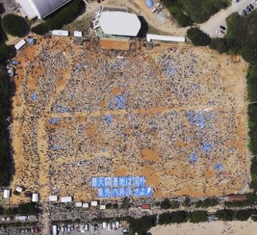 參加集會的有眾多普通市民和縣內(nèi)41個市町村的39名首長。除了該縣選出的執(zhí)政黨國會議員外,前自民黨政權(quán)時期同意將機場遷至名護市的自民黨和公明黨的縣支部也參加了大會。自民黨和公民黨沒有參加去年11月的2萬人反基地集會。