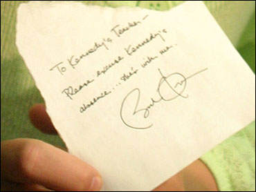 中新網6月12日電 據美聯(lián)社,法新社等媒體報道,拜見美國總統(tǒng)可能是世界上最好的曠課借口,特別是如果總統(tǒng)親自幫你寫假條交給老師。當10歲女生肯尼迪-柯普斯11日將奧巴馬親自寫的請假條交給老師時,老師被驚得目瞪口呆。