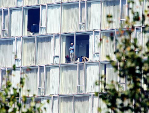 該酒店發(fā)言人表示,酒店將與房客溝通,提醒房客酒店房間的窗戶透明度很高。