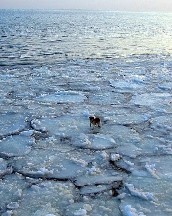 但是奇跡發(fā)生了:這只英勇而又幸運的小狗踩著浮冰,順河再往北漂流了50英里,直到河流的入?冢凰铱瓶即l(fā)現(xiàn)了它的蹤影。