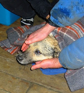 這只小狗第一次被人發(fā)現(xiàn)是在波蘭的格魯瓊茲(Grudziadz),河流上游40英里處。當時當?shù)氐南廊藛T試圖營救它,但由于它在距河岸甚遠處漂流,河中冰層又很厚,如果派出救援艇,會有翻船的危險,最終救援人員只好放棄了營救。