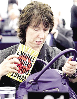 當(dāng)?shù)貢r(shí)間9日,歐盟女外長阿什頓出席歐洲議會,入場坐定后,就從包里掏出一本名為《中國怎么想》的書,這一瞬間剛好被美聯(lián)社記者的快門捕捉下來。