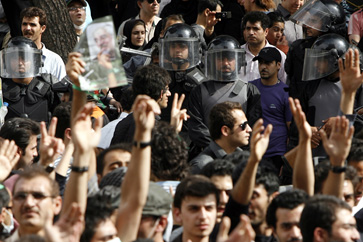 16日,數(shù)以千計的支持者向被防暴警察包圍著的國家電視臺IRIB大樓進發(fā)。估計是為了阻止市中心的示威活動,內(nèi)賈德的支持者在穆薩維支持者最初計劃聚集的地方集合了數(shù)千人。