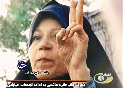 前總統(tǒng)拉夫桑賈尼46歲的女兒哈希米和4名親戚出席了示威活動,被當局扣押,當局解釋是要保護他們免受暴民襲擊。一名官員表示,他們已被移送至最近的軍營里,直至動亂浪潮平息為止。哈希米上周二在國營電視臺大樓外,向穆薩維的支持者發(fā)表講話。拉夫桑賈尼是穆薩維的支持者,曾公開表示不滿內(nèi)賈德。哈希米被捕讓人感到意外,因為最高精神領袖哈梅內(nèi)伊前天才贊揚拉夫桑賈尼為伊朗革命的“建筑師”。