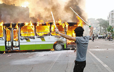 他說示威隊伍約1000人,后來大批駕駛電單車的軍警人員逼近,毆打他們,人群四散躲避之際,民兵卻帶著棍棒在小巷里埋伏。示威者霎時間無路可退,幸得巷里人家開門營救。當示威者遠離警察和民兵后,便高呼“伊朗已變成巴勒斯坦”等口號,駛經(jīng)的汽車都響號,公共汽車乘客揮手支持。