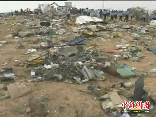 利比亞電視臺播放的新聞畫面顯示,客機失事后,現(xiàn)場遍地殘骸一片狼藉。