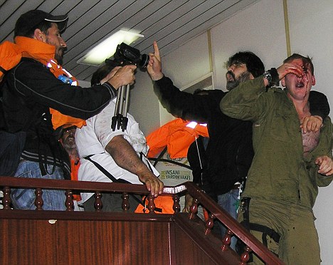 以色列政府發(fā)言人稱,這些照片顯示登船的以軍突擊隊(duì)員真正遇到來自伊斯蘭積極分子核心成員的致命暴力行為。