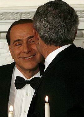 據(jù)英國《太陽報》報道,即將離任的美國總統(tǒng)布什13日晚在白宮為來訪的意大利總理貝盧斯科尼舉行了晚宴,兩人在宴會上表現(xiàn)的非常親密,完全可以說他們舉行了“面對面”的會談。