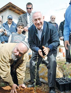 據(jù)以色列《國土報》2月10日報道,以色列利庫德集團領(lǐng)導(dǎo)人內(nèi)塔尼亞胡在大選即將來臨前訪問了戈蘭高地,希望贏得更多右翼選民的支持。在此期間,內(nèi)塔尼亞胡親手在戈蘭高地上種下兩棵桉樹苗,并向以色列的“鄰居”巴勒斯坦表示出一種絕不妥協(xié)的強硬立場。