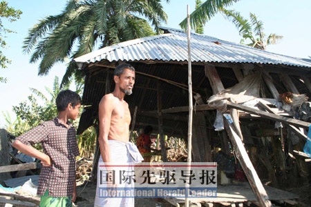 11月19日,這位孟加拉國(guó)南部巴古納縣的村民一邊指著身邊被風(fēng)暴吹倒的房屋,一邊激動(dòng)地對(duì)《國(guó)際先驅(qū)導(dǎo)報(bào)》記者說(shuō):“援助對(duì)于我們來(lái)說(shuō)十分有限,更多的時(shí)候是在捱餓!