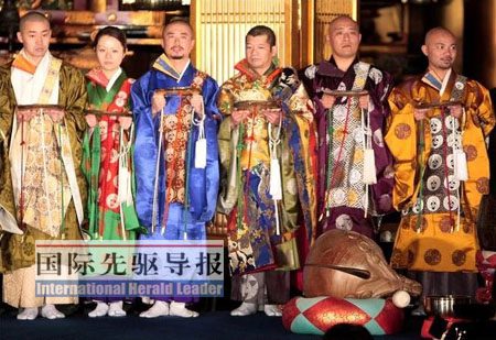 2007年歲末,有近百年歷史的東京筑地本愿寺舉辦了一場別具一格的“時尚僧衣秀”。來自日蓮宗、天臺宗、真言宗等日本八大佛教宗派的近40名和尚尼姑分批登場,伴隨著嘻哈節(jié)拍的佛樂走起“貓步”,向觀眾展示精美華麗的各色僧侶服裝。