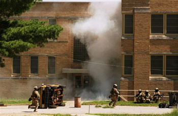 美國印第安納州馬斯喀特塔特城市訓練中心便有這樣一種使用好萊塢效果打造的反恐戰(zhàn)爭體驗營。當?shù)鼐觳筷、國家武裝部隊都曾經(jīng)受過它的實地考驗。近日,訓練營又迎來了美國海軍陸戰(zhàn)隊第26遠征軍的一批士兵。