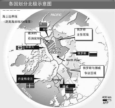2007年,俄聯(lián)邦自然資源部宣布,通過對北冰洋海底土壤樣品的分析,證實(shí)北極圈內(nèi)羅蒙諾索夫海嶺和門捷列夫海嶺是俄聯(lián)邦大陸架的延伸。
