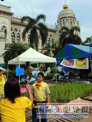 插秧種稻,唱戲彈琴,賣(mài)衣服做按摩,演講喊口號(hào)……這些看起來(lái)互不搭界的行為,同時(shí)發(fā)生在泰國(guó)的行政中心——曼谷的總理府,使它最近成了曼谷這一著名旅游城市的另類(lèi)“新景點(diǎn)”。