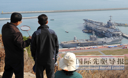 其中滿載排水量達(dá)10.2萬(wàn)噸的“斯坦尼斯”號(hào)航母從加利福尼亞州圣迭戈海軍基地出發(fā),2月18日攜5000名艦員及其他4艘護(hù)艦艇抵達(dá)香港休整。2月27日上午,“斯坦尼斯”號(hào)航母編隊(duì)?咳毡咀羰辣\姼。演習(xí)期間,為防止朝鮮試射“大浦洞”2型遠(yuǎn)程彈道導(dǎo)彈,美軍出動(dòng)的“宙斯盾”級(jí)導(dǎo)彈驅(qū)逐艦達(dá)到7艘,其規(guī)模為歷次演習(xí)所罕見。