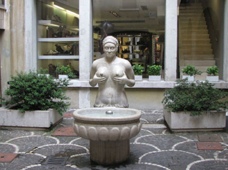 前些天,圓明園兩個青銅獸首的拍賣引起軒然大波,然而很多人不知道,獸首的原作者意大利人郎世寧,卻是精于女性裸體噴泉設(shè)計的人。像這樣充分展現(xiàn)人體的情趣噴泉,在人口非常稠密的商業(yè)區(qū)也能見到。因為曾經(jīng)有過那樣一個黑暗的對人性壓抑的中世紀(jì),于是文藝復(fù)興以來,歐洲人對于身體的贊美和歌頌,處處都散發(fā)著返璞歸真的氣息。在人體藝術(shù)方面,歐洲人似乎很少去追究色情和藝術(shù)的差別,或許在他們眼里,只要能夠使城市變得更加具有情趣的東西,就一定是美和藝術(shù)的吧。(張樾 )