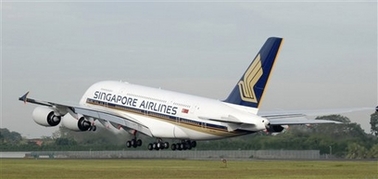 中新網(wǎng)10月25日電 新加坡航空公司首班空客A380客機25日上午載著455名乘客,從樟宜機場起飛前往澳大利亞悉尼。這是這款全球最大的客機的首次商業(yè)飛行。此次旅行大約需要7小時。