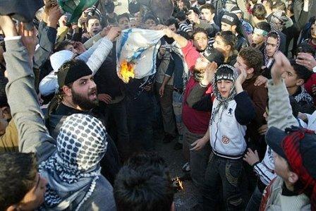 在土耳其、敘利亞和約旦多個城市,上千名民眾聚集,焚燒以色列和美國國旗。
