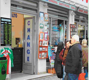 匈牙利福林對歐元的匯率21日跌破300。由于匯率暴跌,首都布達(dá)佩斯的許多持有美元的居民紛紛到貨幣兌換點(diǎn)換錢,成為該市一道獨(dú)特的風(fēng)景。同一天,在布達(dá)佩斯南部最大的電子商城賽騰,由于家電產(chǎn)品大降價(jià),前來購買家電的人們排起了30米的長隊(duì)。商場職員介紹說:“人們認(rèn)為在本周福林繼續(xù)下跌前購置商品可以獲利,因此蜂擁而至。我們已經(jīng)取消了部分商品的減價(jià)活動,我覺得今后我們會把歐元作為標(biāo)價(jià)幣種!