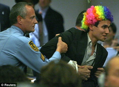據(jù)美聯(lián)社報(bào)道,當(dāng)伊朗總統(tǒng)內(nèi)賈德20日在瑞士日內(nèi)瓦聯(lián)合國(guó)反種族主義大會(huì)發(fā)表批評(píng)以色列的言論時(shí),數(shù)十位西方外交官中途退場(chǎng),兩名化裝成小丑的示威者向內(nèi)賈德投擲假鼻子。會(huì)議從一開(kāi)始就很混亂。當(dāng)內(nèi)賈德開(kāi)始講演時(shí),兩名戴著彩色假發(fā)的示威者向他扔去了小丑的紅色假鼻子。來(lái)自法國(guó)的一個(gè)猶太學(xué)生組織稱(chēng),它試圖向人們傳達(dá)“會(huì)議只不過(guò)是一場(chǎng)假面舞會(huì)”的信息。一名示威者大喊:“你是一個(gè)種族主義者!!彼土硪幻就唠S后被安保人員帶離現(xiàn)場(chǎng)。內(nèi)賈德回應(yīng)稱(chēng):“我請(qǐng)所有尊敬的貴賓原諒這些無(wú)知的人。他們沒(méi)有得到足夠的信息!