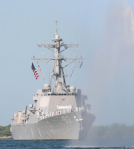 “鐘云”號是美國海軍史上第一艘以華人名字命名的軍艦。這艘DDG93驅(qū)逐艦是為紀念二戰(zhàn)時擊退日本神風敢死隊的華裔海軍少將鐘云(Gordon Paie'a Chung-Hoon)而命名,配有“宙斯盾”作戰(zhàn)系統(tǒng),造價13億美元,是目前世界海軍最先進的驅(qū)逐艦之一。