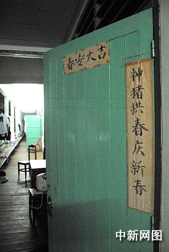 留學(xué)生宿舍門上已經(jīng)褪色的春聯(lián)