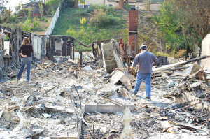 圣地牙哥紅十字會的發(fā)言人?蠅(Gayle Falkenthal)也是受害者之一。她駕著她的1991年豐田轎車從斯克瑞普斯農莊的家中逃出來,車上裝滿了貴重的個人物品。她在圣地牙哥的一位朋友家借住一宿,早晨醒來卻發(fā)現(xiàn)她停在外面的車已被洗劫一空。