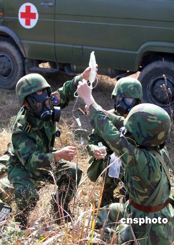 衛(wèi)勤分隊進行戰(zhàn)場救護。