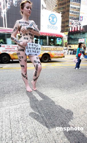 善待動(dòng)物組織女郎街頭裸體抗議肉食工業(yè)(3)