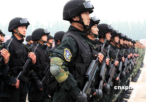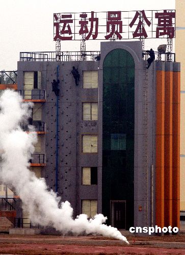 中國武警部隊特勤大隊向駐華武官展示反恐特技。
