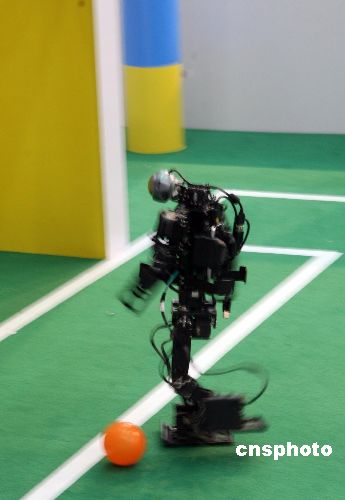 11月14日,海峽兩岸機(jī)器人足球賽在重慶大學(xué)鳴鑼開賽,來自國(guó)際科技大學(xué)、上海交通大學(xué)、清華大學(xué)、華南理工大學(xué)、重慶大學(xué)、成功大學(xué)、中正大學(xué)、淡江大學(xué)、長(zhǎng)庚大學(xué)、高雄第一科技大學(xué)等海峽兩岸知名高校的機(jī)器人,將分為人形機(jī)器人和中型機(jī)器人兩種組別進(jìn)行比賽。據(jù)悉,比賽是由重慶大學(xué)自動(dòng)化學(xué)院、中國(guó)自動(dòng)化學(xué)會(huì)機(jī)器人競(jìng)賽委員會(huì)主辦。中新社發(fā) 郭晉嘉 攝