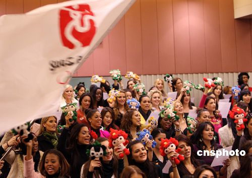 十一月十九日,來(lái)自世界一百多個(gè)國(guó)家和地區(qū)的一百零六名世界小姐在北京舉行奧運(yùn)歌曲《點(diǎn)燃激情 傳遞夢(mèng)想》英文版錄制活動(dòng)。這首北京奧運(yùn)圣火歌曲將在奧運(yùn)歷史上成為演員國(guó)別和地區(qū)最多的一首歌。一百零六名世界佳麗現(xiàn)場(chǎng)演唱北京奧運(yùn)歌曲。中新社發(fā) 任海霞 攝