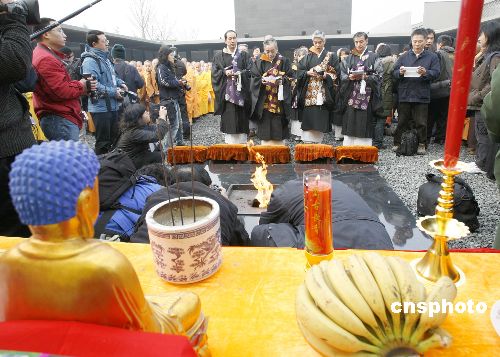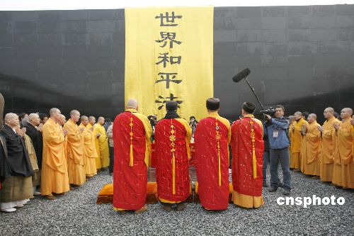12月13日是侵華日軍南京大屠殺30萬同胞遇難70周年祭日,上午,中日僧人在侵華日軍南京大屠殺遇難同胞紀念館舉行世界和平法會,悼念遇難者,祈禱世界和平。中新社發(fā) 祁恩芝 攝