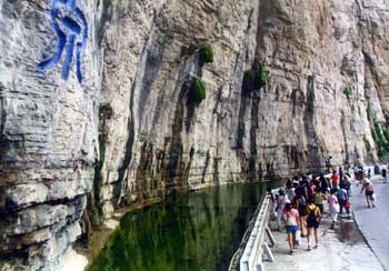 現(xiàn)在崖壁依稀可見五龍圣母的影像,正垂目下望,是她送來(lái)了甘洌的泉水,滋潤(rùn)了萬(wàn)物,降福于人間。在此飲圣水,百天可軟化血管,婦女飲此水無(wú)奶可催奶,兒童可長(zhǎng)身高。千百年來(lái)在此飲圣水者絡(luò)繹不絕。