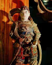救苦天尊殿:三國時(shí),群雄逐鹿,連年混戰(zhàn),原始鬼魂也乘機(jī)出沒人間騷擾百姓。天尊得知鬼魂作怪,便將手中拂塵一揮,使鬼魂消散。百姓抬頭一望,只見一九頭青獅上馱著救苦天尊,再看一位戴官帽的神仙帶領(lǐng)十八神將收了鬼魂。原來是太一救苦天尊領(lǐng)城隍及十八陰司傾城出動(dòng)。后人便自發(fā)捐資修建了天尊殿。自那以后,就有了城隍三出巡,治理鬼魂,使百姓安寧的說法。