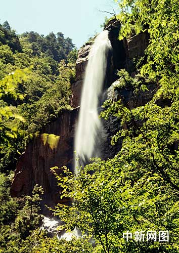 瀑布群 由水濤溝逆上,可以看到幾十處大小不一、形態(tài)各異的瀑布,形成了一幅異彩紛呈的山水畫卷和瀑布群體.主要有:五虎山、仙童坐龜、水牛競渡、虎神護藥、二龍戲水、碧溪垂釣.佛香亭、五龍樹、神泉浴、牛角掛書、知章醉酒、虎口脫險、封侯掛印、巨蟒護生、雙龜馱經(jīng)、天堂知音、金魚戲豹、五龍飛瀑、七星仙橋、刀劈石、先天八卦、后天八卦、群仙拜月、水簾洞府等等。五虎山介休人杰地靈,有“三賢故里”之稱。因春秋晉國大夫介之推攜母隱居被焚,羽化成仙,更使綿山聞名遐邇。北宋名相張商英十分仰慕介子的人品,前來憑吊。由于心切,不顧路途艱辛,一番長途跋涉之后來到綿山巖溝。見這里山環(huán)水繞,泉水淙淙,山高林峻,山花爛漫,令人心曠神怡,便全身心地投入到這青山綠水間,尋覓著介子留下的印跡。卻不料因連日奔波,風(fēng)餐露宿使他積勞成疾。行走間突然眼前一黑,栽倒在地。此時隱隱看見一位鶴發(fā)童顏的老者,領(lǐng)著五只斑斕猛虎走來。老虎將口中銜著的人參恭敬地遞給老者,老者隨即去救他。他蘇醒過來,想起兒時讀過的書上曾記載軒轅集有訓(xùn)虎之能,并能騎虎采藥,救治眾生,當(dāng)年皇上還向他求過長生不老之藥,沒想到竟在此遇見這位仙翁。于是他跪地而拜,稍作休息后又繼續(xù)去尋訪古賢。后人為紀(jì)念這一奇遇在此建五虎山。