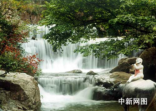 長(zhǎng)壽瀑:宋元豐末年,已近耄耋之年的文彥博致仕歸里省親時(shí)上綿山游覽,正逢南極仙翁云游至此,見綿山山青水秀 、奇巖靈窟、仙氣繚繞,好一方洞天福地。遂按下云頭,化為一老者游覽至水濤溝時(shí)恰遇文彥博在此。仙翁知其為當(dāng)朝元老便搭話:“老翁久仰太師大名今日得見,乃三生有幸。愿贈(zèng)靈芝一枚,食之可長(zhǎng)壽也!睆┎┲x曰:“吾與老翁素昧平生,豈敢受贈(zèng)!崩衔淘唬骸肮藝(guó)之棟梁,公長(zhǎng)壽,民之福也!毖援吇逶颇舷蚨。彥博方知是南極仙翁,納頭便拜。次年文彥博復(fù)職,后歲九十二卒。后人為紀(jì)念這一奇遇,在此 塑壽星和靈芝以志之。