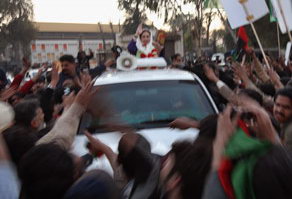中新網(wǎng)12月28日電 綜合報(bào)道,攝影師約翰-莫爾27日拍下了巴基斯坦人民黨領(lǐng)導(dǎo)人、前巴總理貝-布托遇害前的最后一組照片,其中的一張照片顯示,貝-布托從車內(nèi)的天窗站起身來(lái)以向她的支持者揮手示意,她在這之后被兇手的子彈擊中。