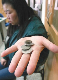 據(jù)臺灣《聯(lián)合報》報道,四十三歲的陳女昨天在警局翻遍全身口袋,僅有三十二元!斑@是我全部的積蓄,要留給媽媽下一餐!闭f完,陳女淚水立刻滑下。警察見狀不忍,掏腰包買面包請她吃,她抹淚紅著眼狼吞虎咽,似乎餓壞了。