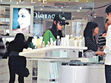 發(fā)完媚功,有氣無力的黃圣依到廣場地下的化妝柜位買護膚品,能夠得CEO女友垂青的品牌當然不是泛泛之輩,產(chǎn)自法國一向以香薰美容作主打的DARPHIN屬貴價品牌,普通一支精華素便要2000元以上,但能夠抗皺緊膚,增強自己的戰(zhàn)斗力?赡軇偛虐l(fā)功太用力,所以Eva回答化妝小姐的問題顯得無神無氣,而購物期間,楊子一直在女友身后發(fā)手機短訊解悶。
