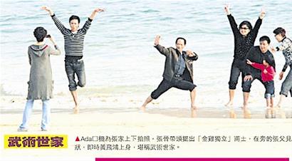 組圖:蔡少芬?guī)Ч庞蜗愀?海灘嬉戲拍搞怪照(2)